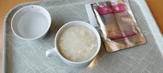 味はごく普通のお粥で特に変わった味はせず、塩味は薄めです。